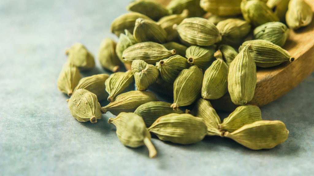 Large cardamom is also grown in select regions, especially in the northeastern states. This variety has a smoky aroma and is commonly used in savory dishes.