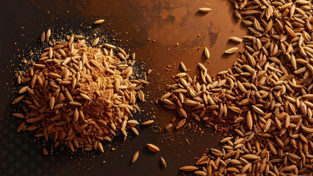Cumin is used in several forms depending on the recipe. Whole seeds are often added to hot oil at the beginning of cooking to release aroma. Ground cumin is commonly used in spice blends, marinades, and seasoning mixes.