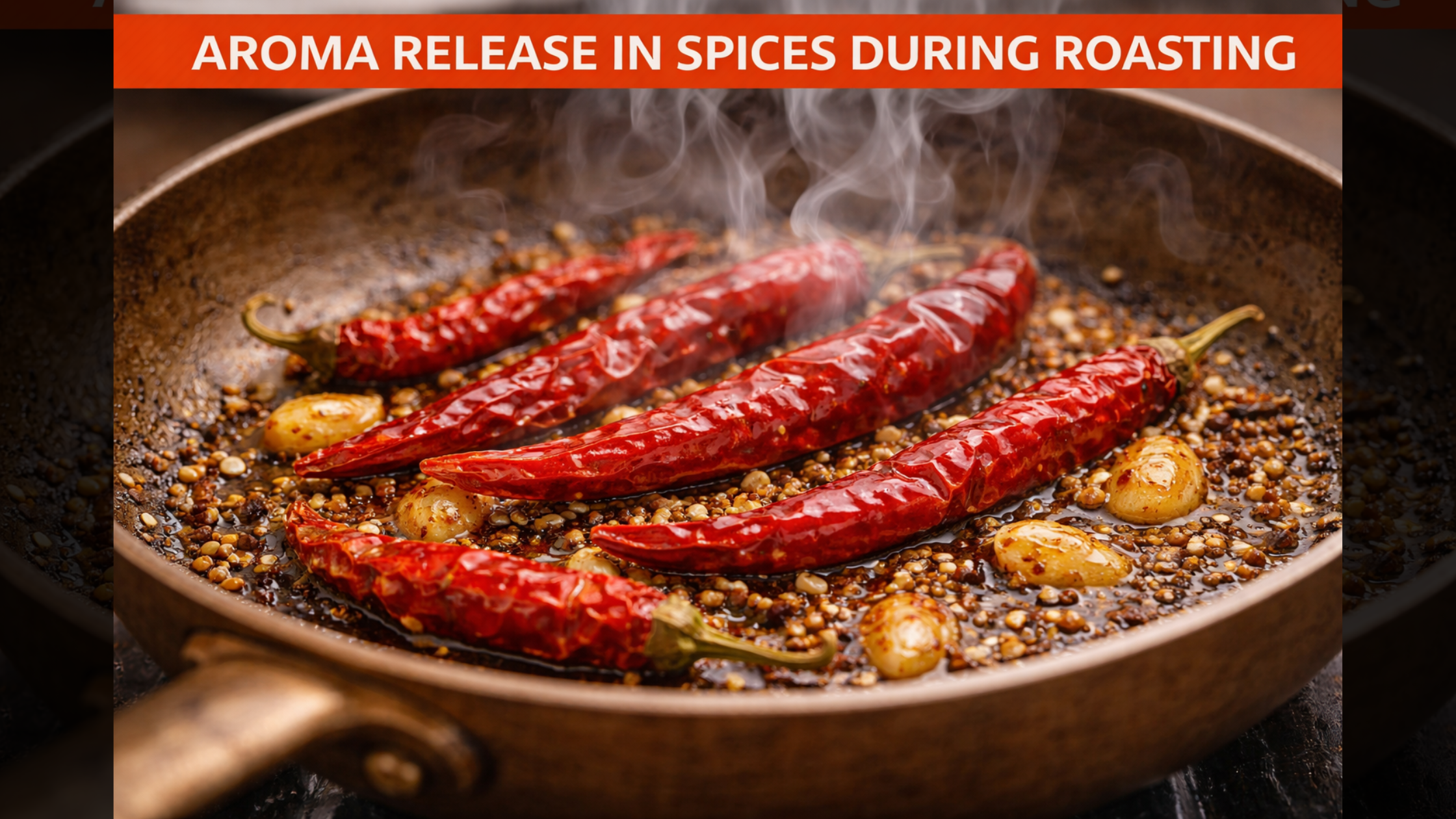 When red chillies meet dry heat, their cellular structure begins breaking down. The natural oils within—primarily capsaicinoids—start volatilizing. This releases aromatic compounds that were locked inside. Simultaneously, sugars present in dried chillies undergo caramelization, adding subtle sweetness that balances heat.