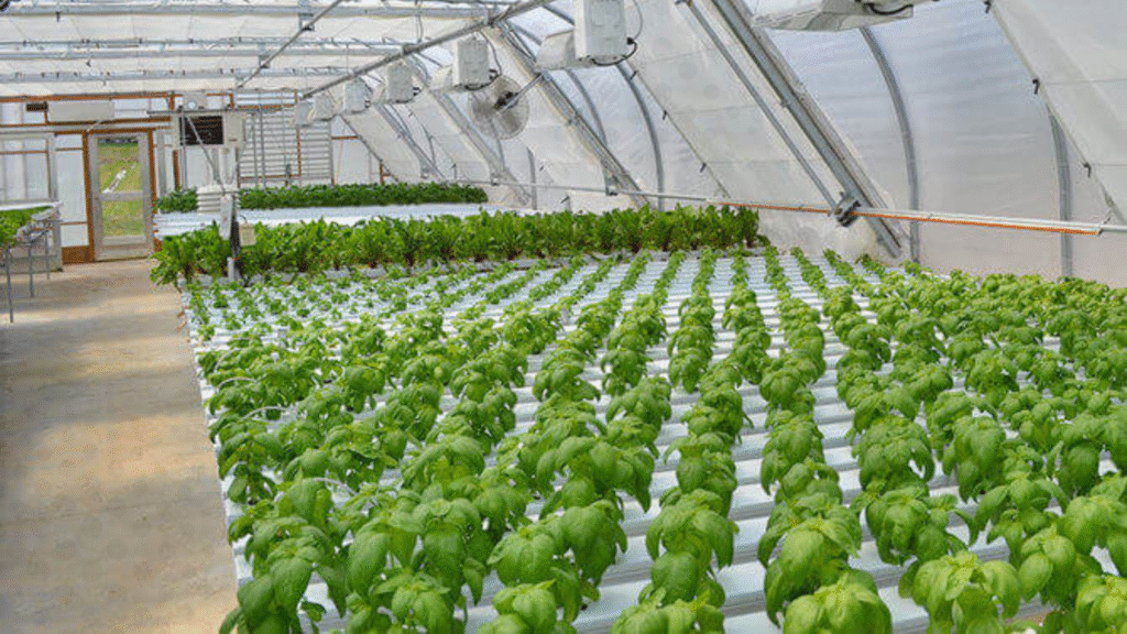 NFT and DWC are widely used in commercial greenhouses because they support continuous production and uniform plant size.